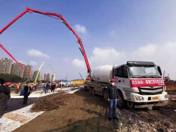 而在這之前的28日上午10時,徐承忠信守承諾,護(hù)送裝有2000立方米混凝土的泵車到達(dá)武漢火神山醫(yī)院施工現(xiàn)場,用于地基澆筑。